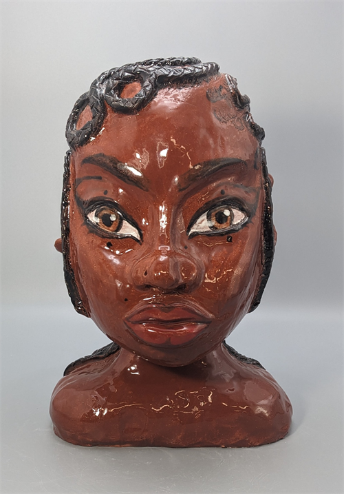 | Description: | A coil built sculpture of an African American woman with cornrows in different patterns. |