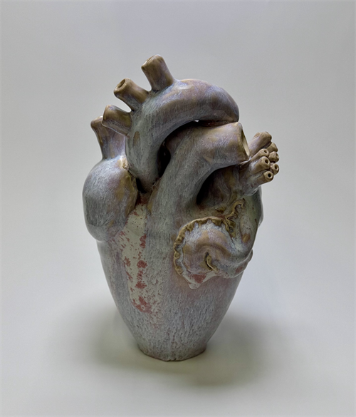 | Description: | The hand built vase takes the form of an anatomical heart, directly linking the goddess of love. The soft red glaze evokes flesh, blood, and passion, while the kintsugi details reference Aphrodite’s dual nature: love as both generative and wounding, fragile yet enduring, made sacred through repair and resilience rather than perfection. |