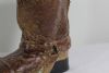 | Description: | This piece was made using low-fired earthenware. The assignment for this piece was to choose a shoe and make a realistic looking replica of it. I was interested in the details of the boot, specifically the straps and the stitching, and also the texture, which was leather. The boot I choose was also old and a little damaged, so I wanted to recreate the folds and bumps in the material. To make the boot more interesting, I added some color on the heel. |