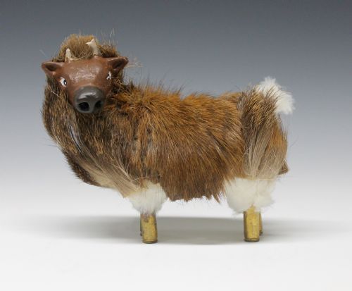 | Description: | "I created this deer as a replica of the one I shot in Alabama while hunting with my Dad. It was fall and an hour into our hunting trip when the deer came out with a spotted fawn. When the deer and fawn walked 25 yards away from me, I shot the deer in the shoulder. This memory is captured with the real rifle shells I used on my trip. I formed the clay around these shells to build the deer so that the shells fit tightly on as the legs after firing. Once fired, I used epoxy to glue on real elk and deer hides and faux white fur to make my deer look realistic. I then painted the face and antlers with acrylic paint." |