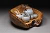 | Description: | I have always found the ocean fascinating. Out of all the organisms that lie within, I find the oyster and pearl to be the most inspiring. The oyster appears ordinary at first glance, yet it has the ability to turn unwanted particles into extraordinary pearls. For my final high school piece, I decided to integrate all the skills I have developed over the years to represent the oyster in the most challenging, functional form to master: the tea set. Like the oyster, a tea set does not impress with its large size; its beauty comes from within the time devoted to its development, its delicacy, and its functionality. After numerous broken pieces and piles of imperfect teacups, I created sphere-shaped vessels that mimic the oyster with carved waves to represent the ocean it came from. I made each component using natural materials: porcelaneous clay I threw into vessels, powders I mixed into Sam’s Satin Celadon Glaze, wood I turned and carved into teaspoons and rings, a tree stump I ground and sanded into the shell, and metal rods I forged and welded into handles. This piece symbolizes the oyster's ability to utilize the materials available and transform them into something beautiful. |
