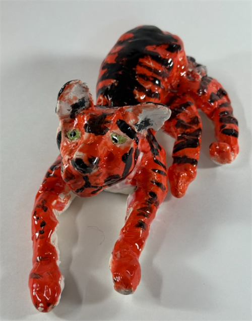 Description: Michael is a very emotional young man and adores tigers and wanted to express his emotion through his artwork. he spent a lot of time making the feeling and facial expression of the tiger demonstrate his love of art and life. This was Michael's first piece of serious sculpture.