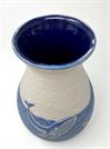 | Description: | Wheel Thrown vase, trimmed on the wheel, painted with blue underglaze. Then I use sgraffito to create an image of a whale, shark, and octopus. I wanted to create this piece because I remember when I was a kid going to the beach and wondering what was in this big body of water. And finding out what was in the ocean is what made me want to make this piece. |