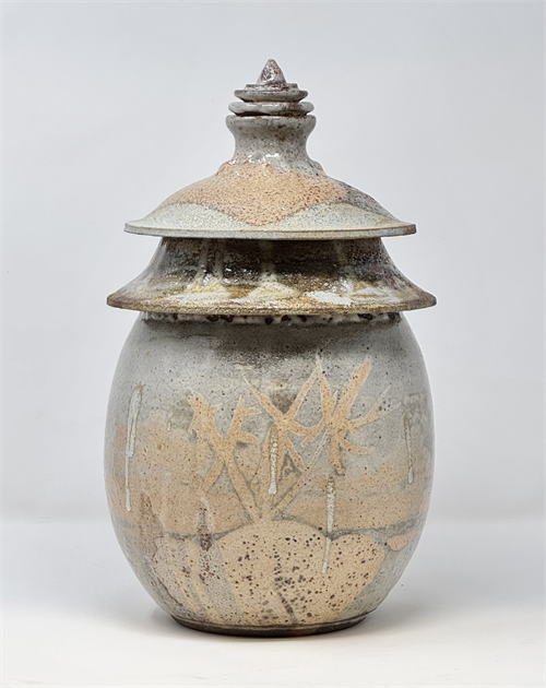 | Description: | This lidded pot draws inspiration from the layered roofs of traditional Japanese architecture, featuring a multi-tiered lid crafted entirely on the wheel in multiple sections. The wheel-thrown base and intricately constructed lid work together to create a design that’s both functional and sculptural. The glaze is rich with variations and complexity, highlighting the artist’s creativity and skillful attention to detail. Every angle reveals something new, making this piece a thoughtful blend of architectural elegance and ceramic artistry. |