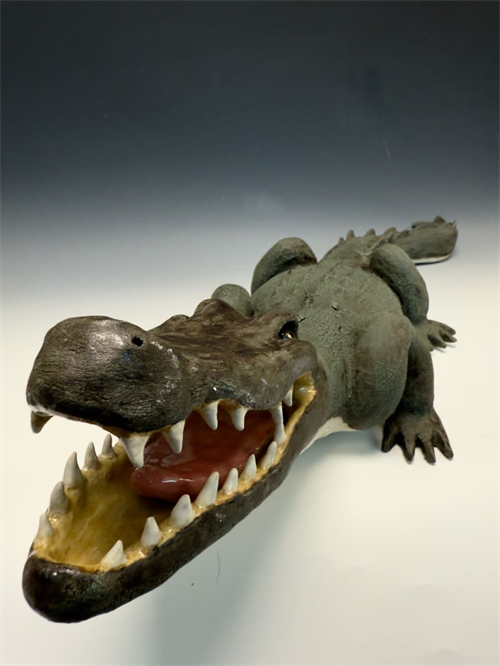 | Glaze Vendor: | Amaco, Jet Black Unerglaze with Coyote Alligator crawl glaze over |