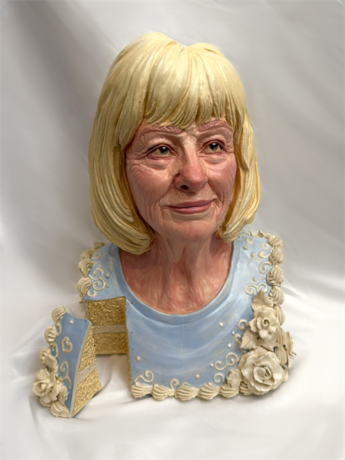 | Description: | bust of an older woman with a slice of cake taken from the shoulder |