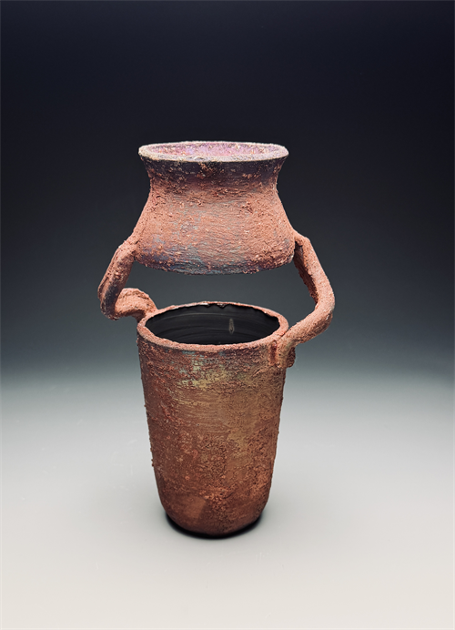| Description: | Vase with negative space separation at the shoulder raku fired |